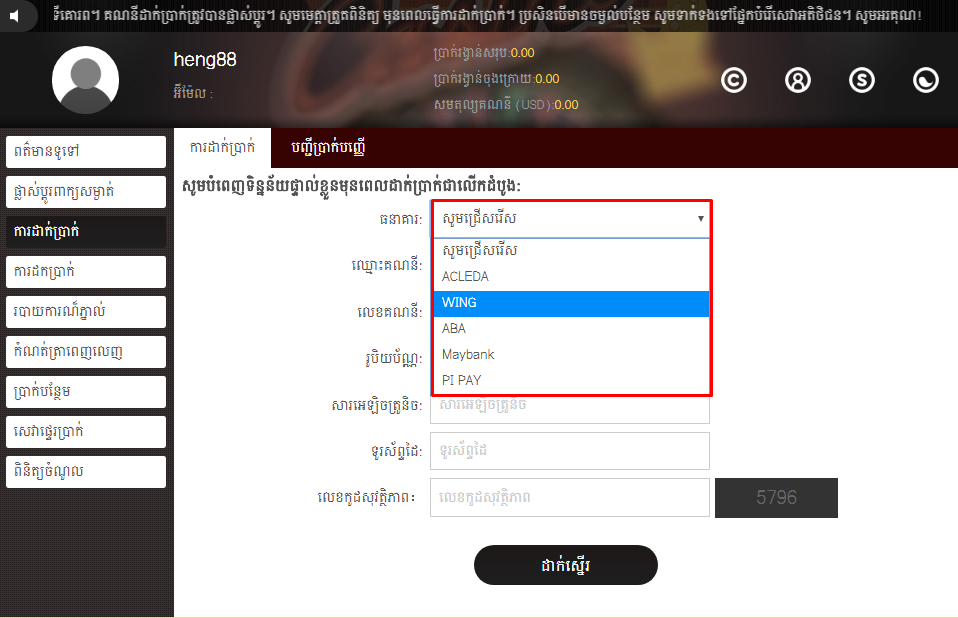ការណែនាំរបៀបដាក់ប្រាក់