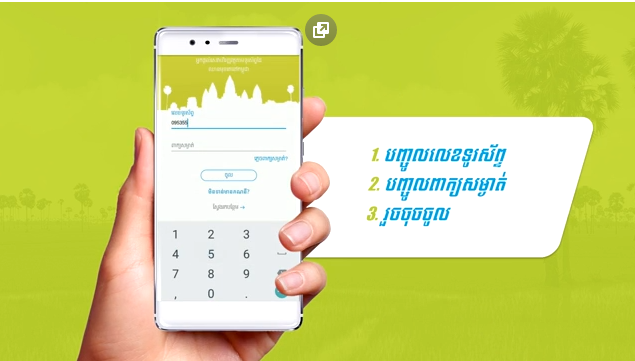 ចូរអ្នកបំពេញលេខទូរស័ព្ទរបស់អ្នក និងលេខសម្ងាត់របស់អ្នក រួចចុច “ចូល” ជាការស្រេច។