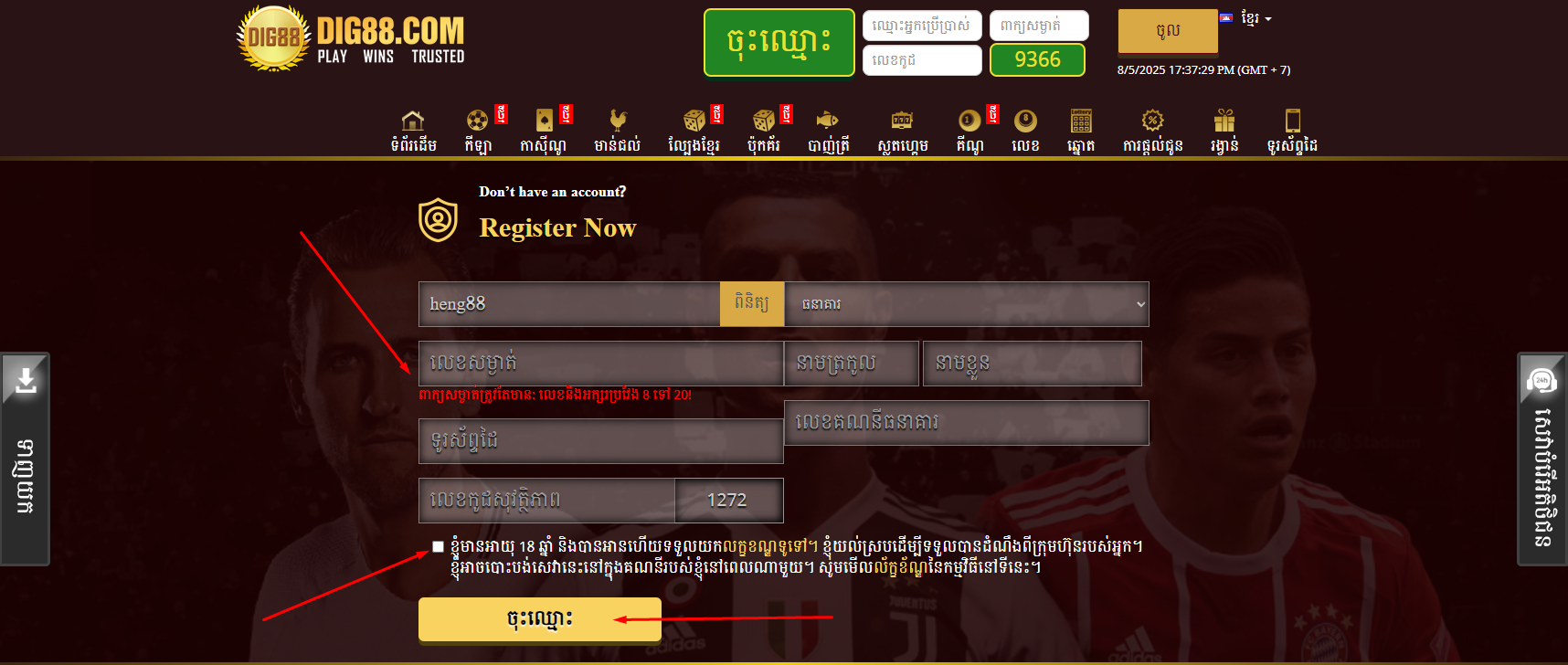សំណួរ៖ តើត្រូវធ្វើដូចម្តេចខ្លះ ដើម្បីអាចចុះឈ្មោះលេងជាមួយនឹងវេបសាយDIG88 បាន?
