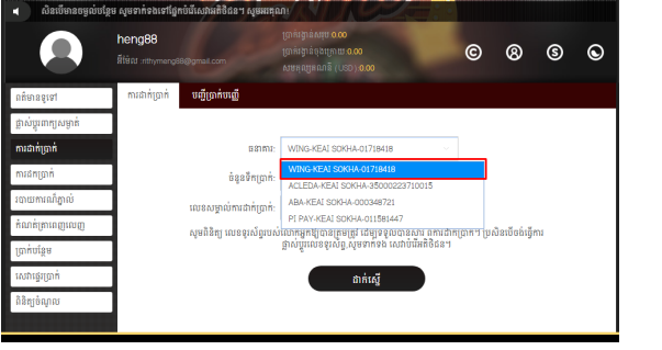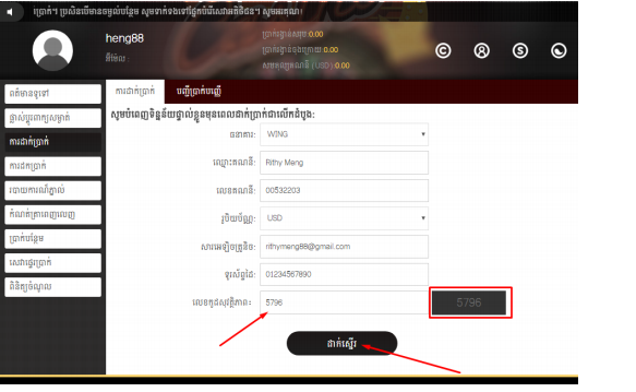 សូមបំពេញចំនួនទឹកប្រាក់ដែលអ្នកចង់ធ្វើការចូលលេងជាមួយនឹងវេបសាយយើងខ្ញុំរួចដាក់ស្នើរគឺជាការស្រេច។
